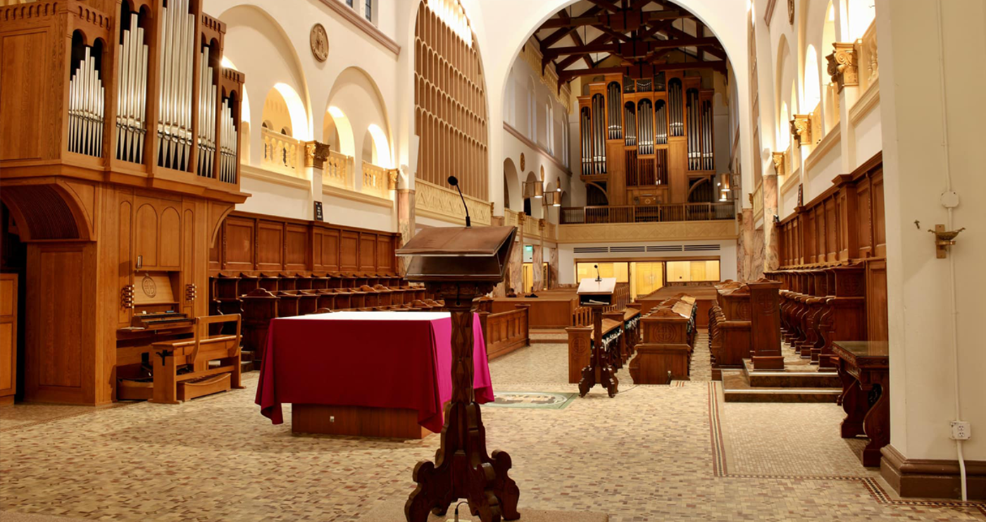 “Five times a day, every day, monks gather in the church for various functions,” explains Sheets. “There is no audio engineer or large mixing console, so the DPAs help provide a balanced sound in the venue and for the live stream. The goosenecks ensure the warmest, most natural sound possible for speech and singing at the ambo and lectern. In the triforium, the 2011Cs act as adjacent pairs of choir microphones, while the 6060s nearly disappear from view as they pick up the sound of the rear organ.”